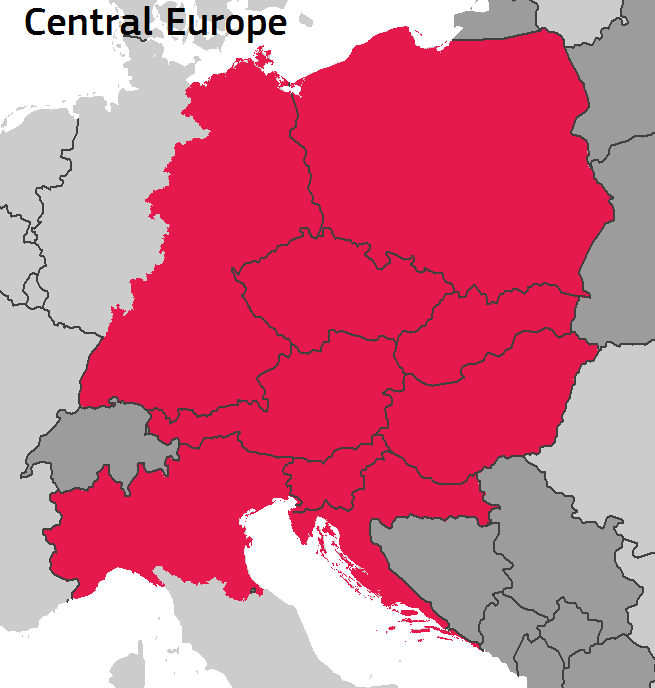 La zone de coopération de l'Europe centrale comprend un vaste territoire allant de la zone méridionale, bordant la mer Adriatique à la zone septentrionale, bordant la mer Baltique. La zone de coopération 2021-2027 coïncide en grande partie avec l’ensemble de l’extension du précédent programme Interreg, qui couvrait l’ensemble de la zone de sept États membres de l’UE (Autriche, Croatie, République tchèque, Hongrie, Pologne, Slovaquie et Slovénie), les régions centrales et orientales de l’Allemagne (y compris désormais la région de Braunschweig) et les régions septentrionales de l’Italie. Une carte comparant les anciennes et les nouvelles frontières peut être consultée ici.