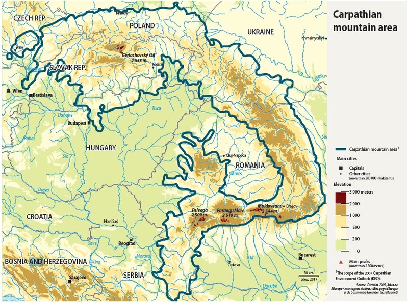 I Carpazi sono il secondo sistema montuoso più lungo d'Europa e coprono un'area di circa 210.000 chilometri quadrati. Sette paesi (Repubblica ceca, Ungheria, Polonia, Romania, Serbia, Repubblica slovacca e Ucraina) condividono il territorio della regione dei Carpazi, cinque dei quali sono membri dell'UE.